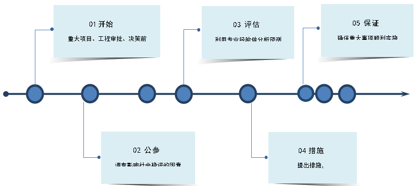 是指與人民群眾利益密切相關的重大決策、重要政策、重大改革措施、重大工程建設項目、與社會公共秩序相關的重大活動等重大事項在制定出臺、組織實施或審批審核前,對可能影響社會穩定的因素開展系統的調查,科學的預測、分析和評估,制定風險應對策略和預案。為有效規避、預防、控制重大事項實施過程中可能產生的社會穩定風險,為更好的確保重大事項順利實施。